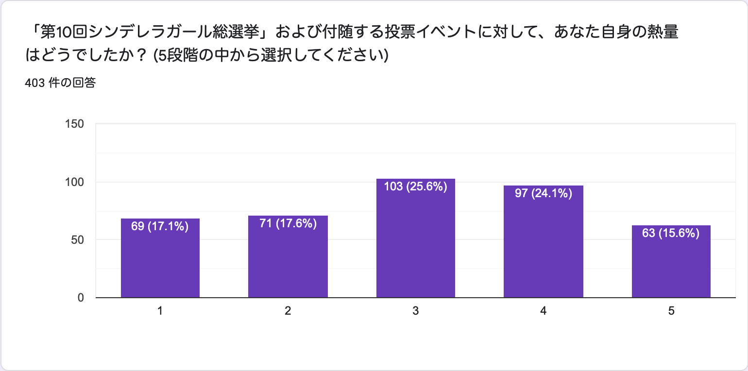 Q. 「第10回シンデレラガール総選挙」および付随する投票イベントに対して、あなた自身の熱量はどうでしたか?
